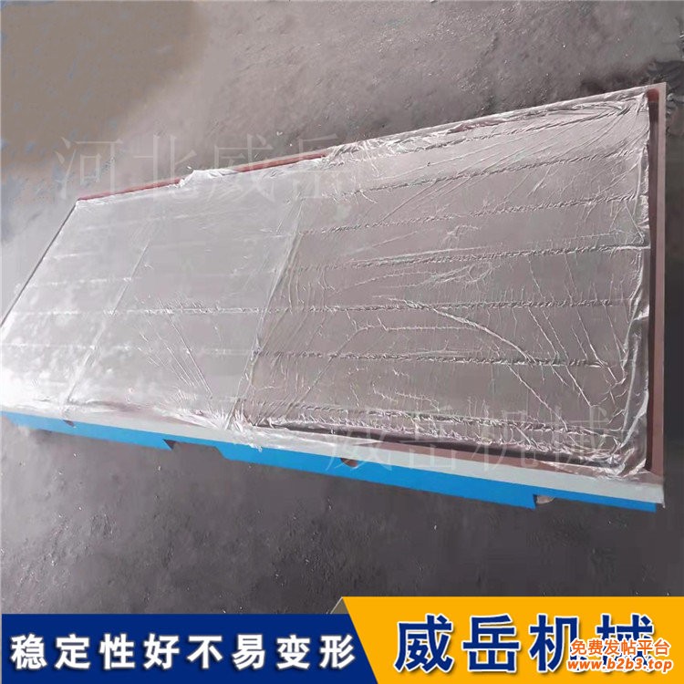 铸铁平台材质: 材料为高强度铸铁HT200-250工作面硬度为HB160-210。经过两次处理(人工退火600度----700度或自然时效2---3 年),使该产品的精度稳定,耐磨性能好。