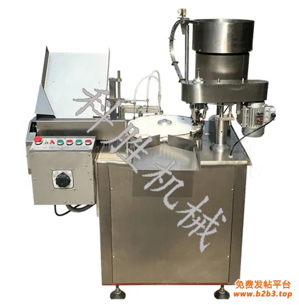 该口服液灌装机适用于制药厂小剂量的,糖灌装和轧盖工序,全机可完成理瓶、输瓶、定量灌装、理盖、送盖、轧盖工序,与物料接触配件采用316L不锈钢或PTFE制造,具有无瓶不灌装,变频调速等功能。