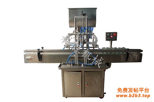 性能特点:1、电器气动元件,故障率低,稳定可靠, 2、与物料接触为不锈钢,拆装简单,易清洗,符合食品卫生要求;3、灌装量和灌装速度可调整,设置无瓶不灌装,自动加料;4、不需更换零件,即可调整更换不同规格的瓶子,适用性强;5、灌装嘴设有防滴漏装置,确保灌装无拉丝、不滴漏。