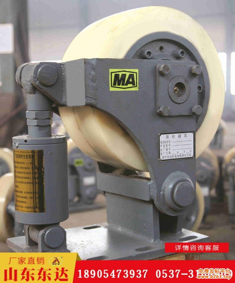 L45单轮滚轮罐耳的配件:滚轮、罐耳、导向轮、罐道轮、管道轮、轮皮、支架、缓冲装置(弹簧)、底座。L系列滚轮罐耳配合罐笼使用,一个罐笼需要安装四
