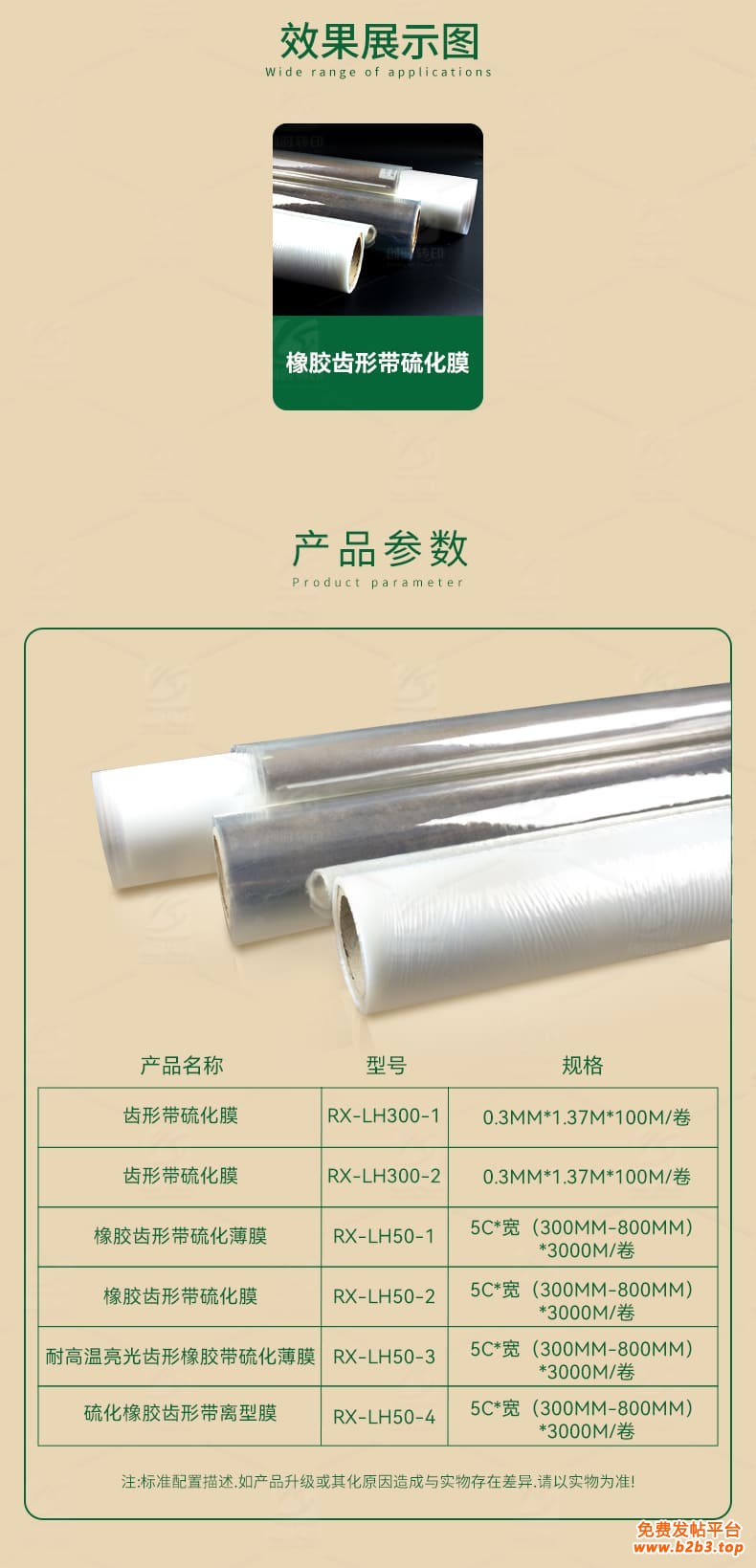 圆弧齿橡胶同步带硫化转印薄膜 盖茨双面齿皮带模内硫化薄膜 齿形皮带硫化转移膜