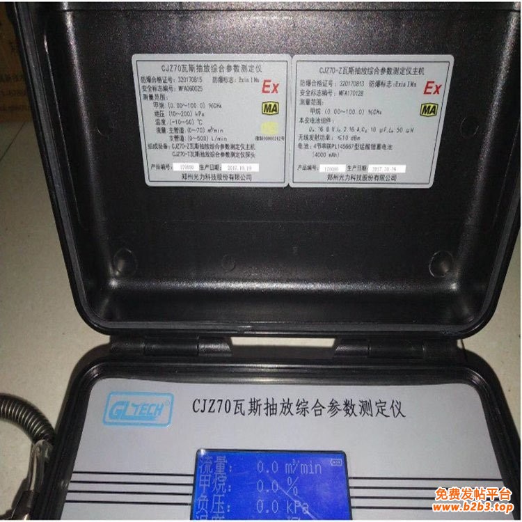 CJZ70便携式瓦斯抽放综合参数检测仪是测量瓦斯抽放管道性能的便携式矿用本质安全型仪器。依据MT642-1996《管道瓦斯抽放综合参数测定仪技术条件》设计,专门用于测定瓦斯抽放管道(主管道及支管道)的甲烷浓度、管道负压、管道绝压、气体温度,流量计前后差压;并能根据所测得的数据以及用户输入的参数得到瓦斯混合流量、纯流量等瓦斯抽放管道有关的参数。具有测量精度高、使用简单、操作方便等优点。Kuangan002