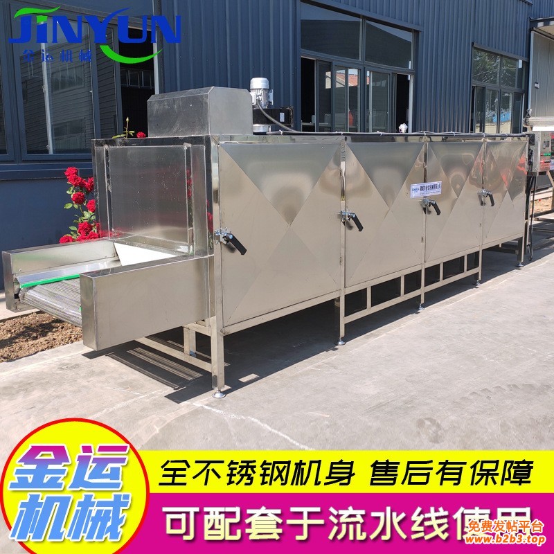 烘干机有循环风机,加热装置,新鲜空气抽入系统和尾气排出系统。对干燥介质数量,温度,湿度和尾气循环量操作参数,可进行独立控制,从而保证带干机的可靠性和操作条件,网带式烘干机操作灵活,湿物进料,干燥过程在密封的箱体内进行,劳动条件较好,免了粉尘的外泄。物料由加料器均匀的铺在网带上,网带采用不锈钢丝网。有传动装置拖动在干燥机内移动。网带式烘干机每一单元热风独立循环,部分尾气有专门排湿风机排出,废气有调节阀控制,热气有下往上或有上往下穿过铺在网带上的物料,加热干燥并带走水分。网带缓慢移动,运行速度可根据物料温度自由调节,干燥后的成品连续落入收料器中食品真空袋烘干机 三层网带式烘干机 水果蔬菜丁多层翻转烘干机。