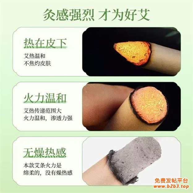选用大别山陈年艾叶,灸感更好,艾绒细腻,蓬松柔软易成型;热在皮下,艾热温和,不焦灼皮肤;艾热传递范围大,火力温和,没有燥热感。