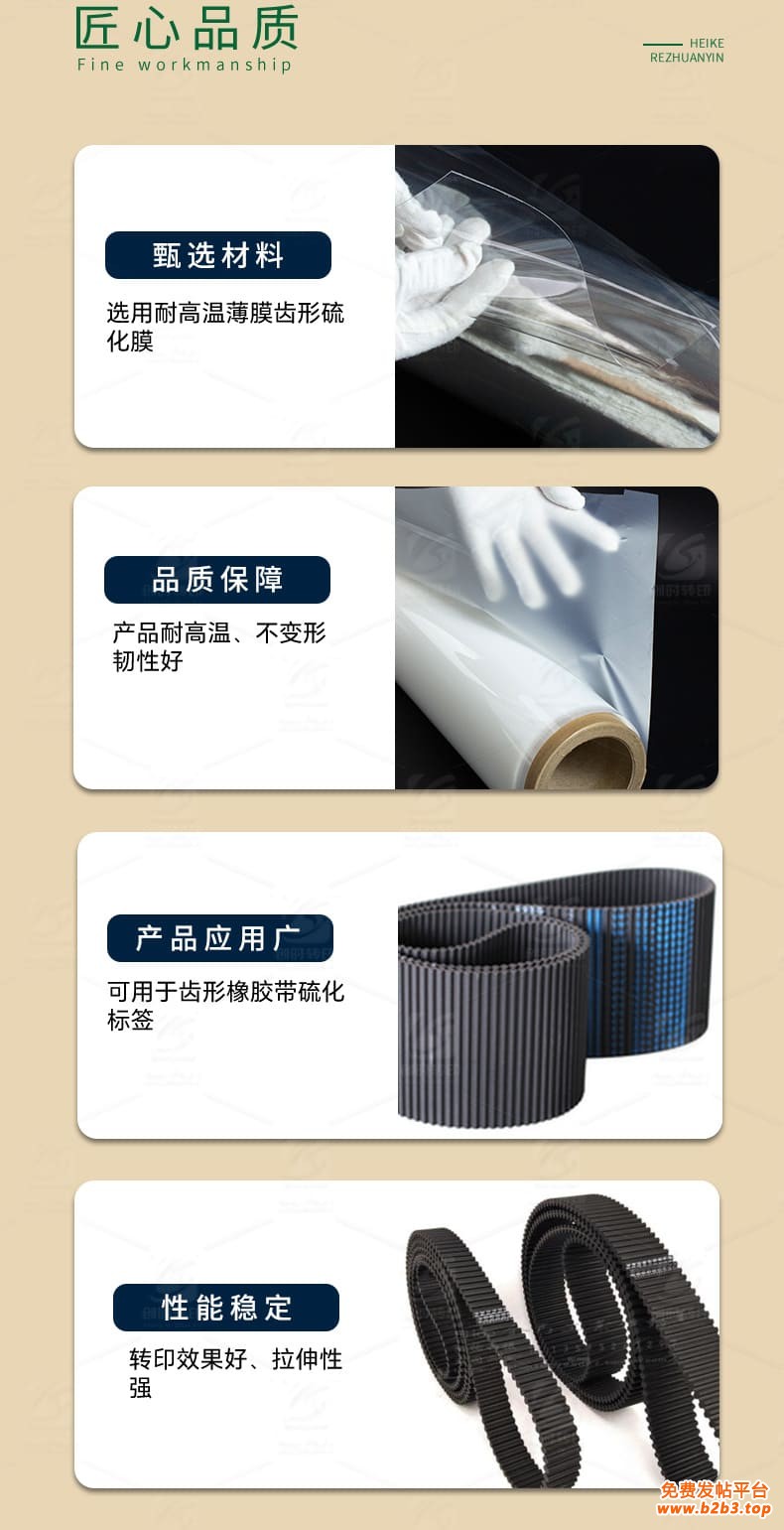 橡胶转移印花模内硫化膜 双面齿同步带硫化印字膜 圆弧齿橡胶同步带硫化转印薄膜