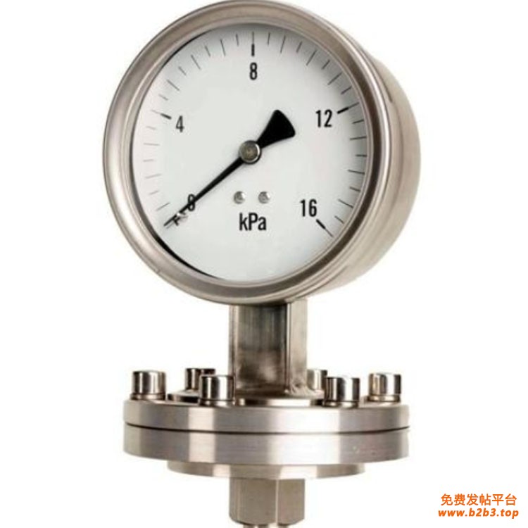 耐蚀性:隔膜压力表的耐蚀性包含环境及测量介质的腐蚀性,可按使用条件选配隔离器,隔膜、密封垫圈的材料。