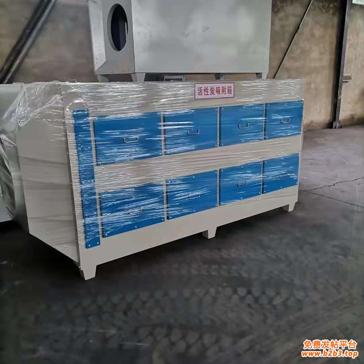使其与气体混合物分离,净化后的气体高空排放。活性炭环保箱是一种干式废气处理设备,由箱体和填装在箱体内的吸附单元组成。