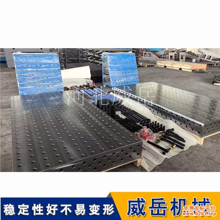 标准化连接接口:三维柔性焊接平台采用统一T型槽规格(槽宽16/22/28mm,间距50/100mm),配备快锁紧销与定点销,可直接与自动化焊接机器人的末端执行器、变位机工作台对接。接口采用ISO标准尺寸,重复定点精度≤0.02mm,确保机器人焊接路径与平台夹具定点匹配;