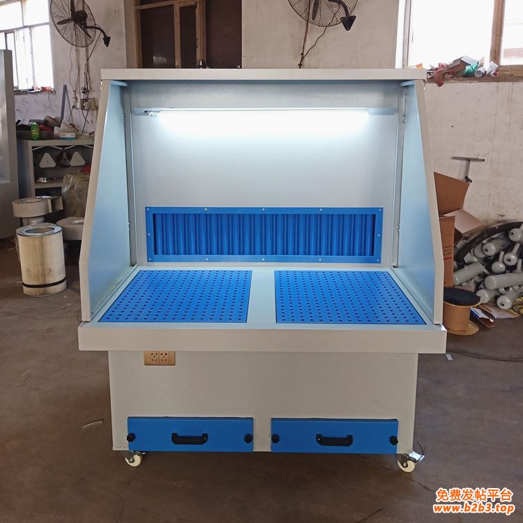 打磨除尘工作台除尘操作台湿式打磨抛光吸尘台金属粉尘收集打磨台1 : 打磨工作台适用于中小型精细加工、不规则部件加工工况。在不干涉工人日常作业的前提下,打磨工作台可有效捕集悬浮的细小尘埃,给工人提供洁净的工作环境。