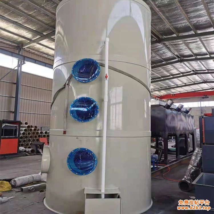 注塑车间用多层喷淋系统废气净化塔酸雾处理耐酸碱腐蚀pp喷淋塔 PP喷淋洗涤塔是废气处理工程中常用的净化设备。该净化塔有“立式”及“卧式”两种产品。本产品广泛用于、电镀、五金、铝材、电器、医药、印染、等机械加工行业中产生水溶性有毒有害气体的净化;亦可适用于、胺类等恶臭物质的除臭处理。