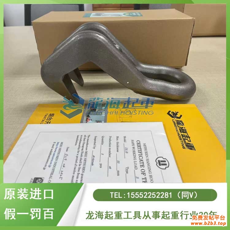龙海起重工具有限公司自20116开始销售日本NETSUREN三木品牌产品,产品拥有ISO 9001认证、产品检测报告以及品质保证证书,其中日本NETSUREN三木钢板吊钩DL型在规定负荷以上可承受265万次(2,650,000次)循环加载,因此可确保长期稳定使用保证原装进口、假一罚百!