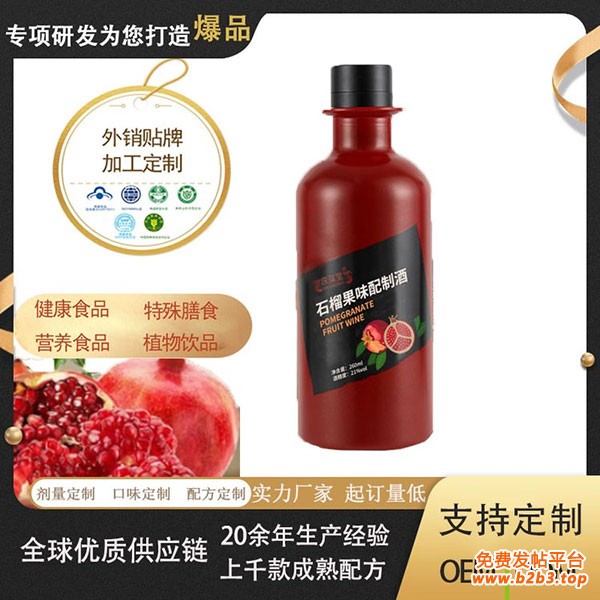 石榴果味配制酒支持加工 商超果露酒贴牌定制