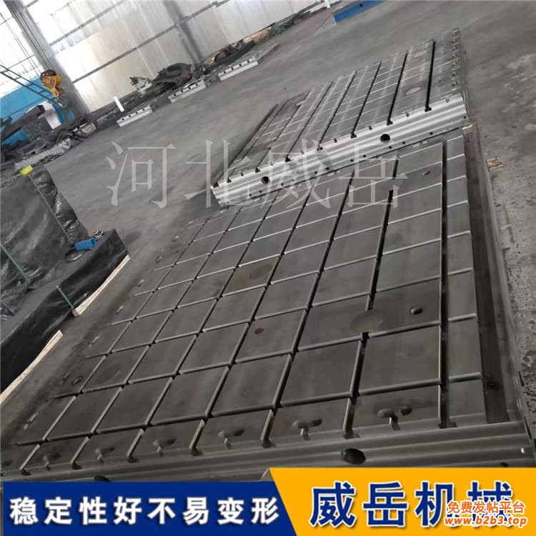 试验台铁地板的承载技术,是支撑重型设备的核心底气。试验台铁地板选用HT300强度灰铸铁或QT600球墨铸铁,这类材质的抗拉强度≥300MPa,抗压强度超950MPa,弹性模量达165GPa,能分散设备重量与试验冲击力。结构设计上采用“箱型封闭框架+加密筋板矩阵”,筋板厚度18-25mm,间距控制在150-200mm,形成密集支撑网格,将单点受力均匀传递至整个台面。针对30吨级以上重型检测设备,还可定制加厚台面(厚度≥80mm)与底部加强护板,台面大挠度≤0.02mm/m,远超行业标准的0.05mm/m,即便长期承载重载设备,也能避免变形,从结构根源上保障承载稳定性。实验室使用的4000×3000mm试验台铁地板,长期承载28吨级零部件检测设备,运行3年无明显挠度变化,承载稳定性得到严苛场景验证。​