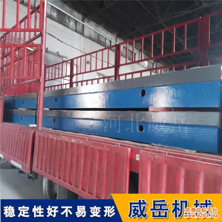 铸铁平台材质: 材料为高强度铸铁HT200-250工作面硬度为HB160-210。经过两次处理(人工退火600度----700度或自然时效2---3 年),使该产品的精度稳定,耐磨性能好。