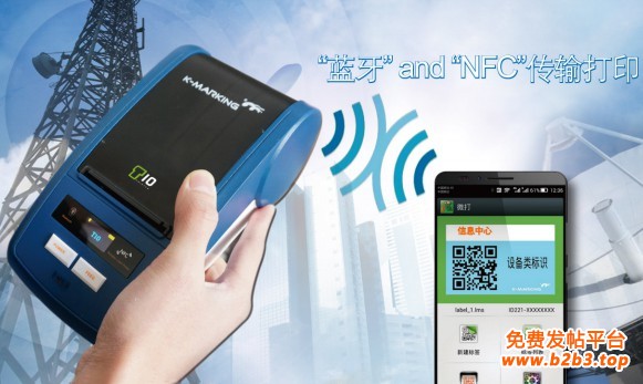 本款设备是业界将NFC(非接触式识别和互联技术)应用于便携打印领域的产品,此功能有效的将传统的人工蓝牙搜索、配对,转变为智能互联,使用者只需将手机终端靠近打印设备,便可完成蓝牙搜索、配对和连接,同时设备自动开机,手机进入“微打印”APP状态,完成打印前的所有准备工作。