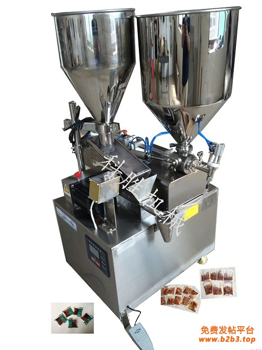 无级调整。采用辣椒籽灌装、辣椒油灌装,产品在包装后充分的融合,针对辣椒籽、辣椒油、凉皮调料进行自动包装。