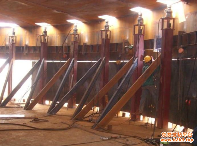 (2)安装。按确定位置,将立柱固定在底板上,应接触且应垂直,用J507焊条焊牢。