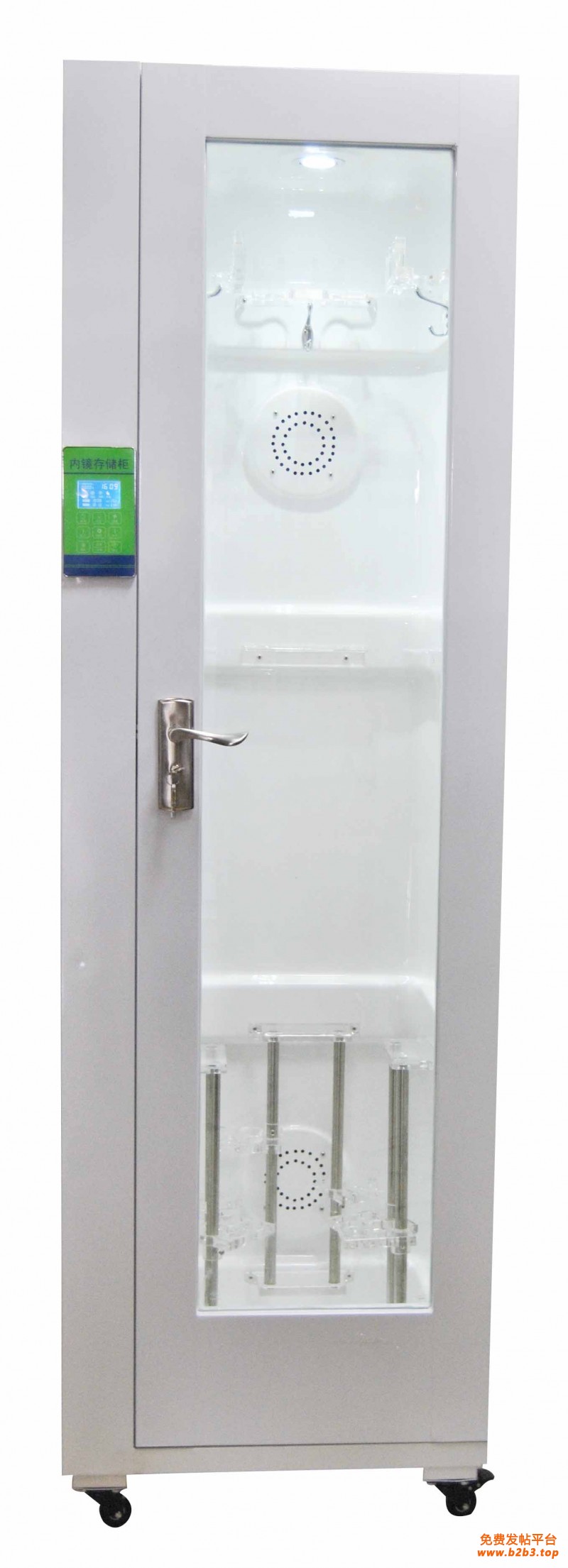 微电脑数显示内窥镜存储柜产品特点:单门软镜储存柜设有上中下三层挂钩,定位内镜,避免相互碰撞;主要控制方式采用微电脑中文显示控制系统。可储存3-4条内镜。双门软镜储存柜内部设有上中下三层挂钩,定位内镜,避免相互碰撞;主要控制方式采用微电脑中文显示控制系统。可储存6-10条内镜。单门硬镜储存柜内设有6层专用托盘用于存放硬镜及其他器械,托盘活动可拿下用于承载;主要控制方式采用微电脑中文显示控制系统。 适用用于内镜室、室、镜室、膀胱镜室耳鼻喉科、五官科等,用于无菌存放各式软式内窥镜、硬式内窥镜及其它器械。
