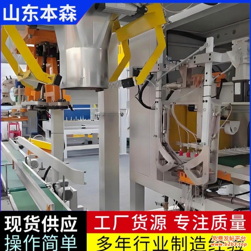全流程自动化:集成PLC控制系统,实现夹袋、吹袋、喂料、计量充填、排气、落袋、托盘配送、成品袋输送等环节的自动化操作,工人仅需挂空袋和袋子进料口打结。