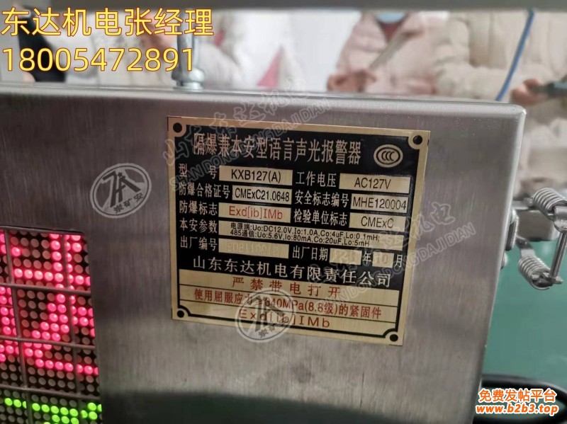 KXB127(A)隔爆兼本安型语言声光报警器具有多路触发显示报警功能,根据现场需要修改为点触、保持等多种触发模式,可用于绞车运输巷、索车运输巷、皮带运输巷、巷道风门处、掘进迎头、平巷机车拐弯处作为安全警示信号使用。该产品发出语音提示信号的同时,滚动显示汉字字幕作为警示信号,以提示行人。具有体积小、重量轻、设计新颖、功能先进、性能稳定、一机多用等特点。