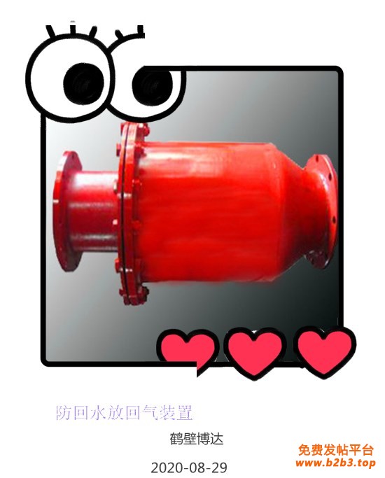 1、安装此装置时切记止回挡板一定要竖直向下,使其在无外力作用下能够依靠自重将管口紧密盖住,排水阀门应该在装置的下方,如果条件允许,在排水阀门下接一个排水管路,将排出的水引入排水池中。