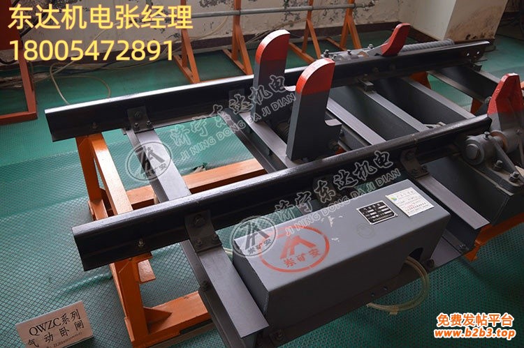该产品是煤矿轨道运输中使用的安全保护装置,使用气体动力实现卧闸的关闭,依靠弹簧力自动开启,处于开启阻车状态。QWZC系列气动卧闸始终处于对一方向矿车开启阻车状态,阻挡此方向矿车,防止矿车自溜,当此方向矿车需要通过卧闸时,利用气动操作关闭卧闸放行矿车,当矿车通过后,卧闸能自动开启。对反方向运行矿车不用操作就可通过气动卧闸,通过后自动开启。